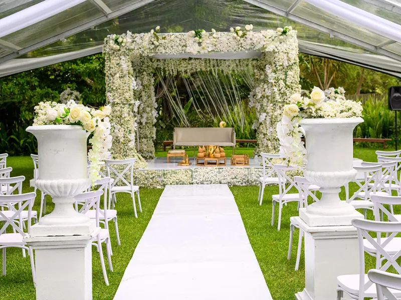 In addition to the bridal salon and chapel, Collisheen Estate provides catering with over seven menus to select from, tables, chairs, linen, glassware, cutlery, and crockery. Staff at the estate include a venue coordinator, bartenders and servers, with full bar facilities. The property hosts a variety of locations for a memorable photoshoot, including the garden and the surrounding sugarcane fields. Services not included but can be arranged or recommended include event styling items such as draping and lighting, a