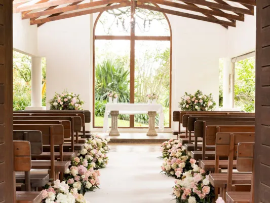 The Orchid House is an open-sided building spanning 150 square meters, comfortably accommodating up to 60 guests in the chapel and 120 guests in the chapel wing, ensuring an intimate wedding. The venue comes complete with a range of amenities designed to ease the worries of any bride or groom. These include a bridal salon, a chapel, full reception facilities, and extensive parking with views of the well-manicured garden. The Orchid House at Collisheen Estate is the ideal location for a garden wedding, an elegant cocktail evening, or a simple celebration. Traditional and Christian weddings can also be held in the garden if desired.